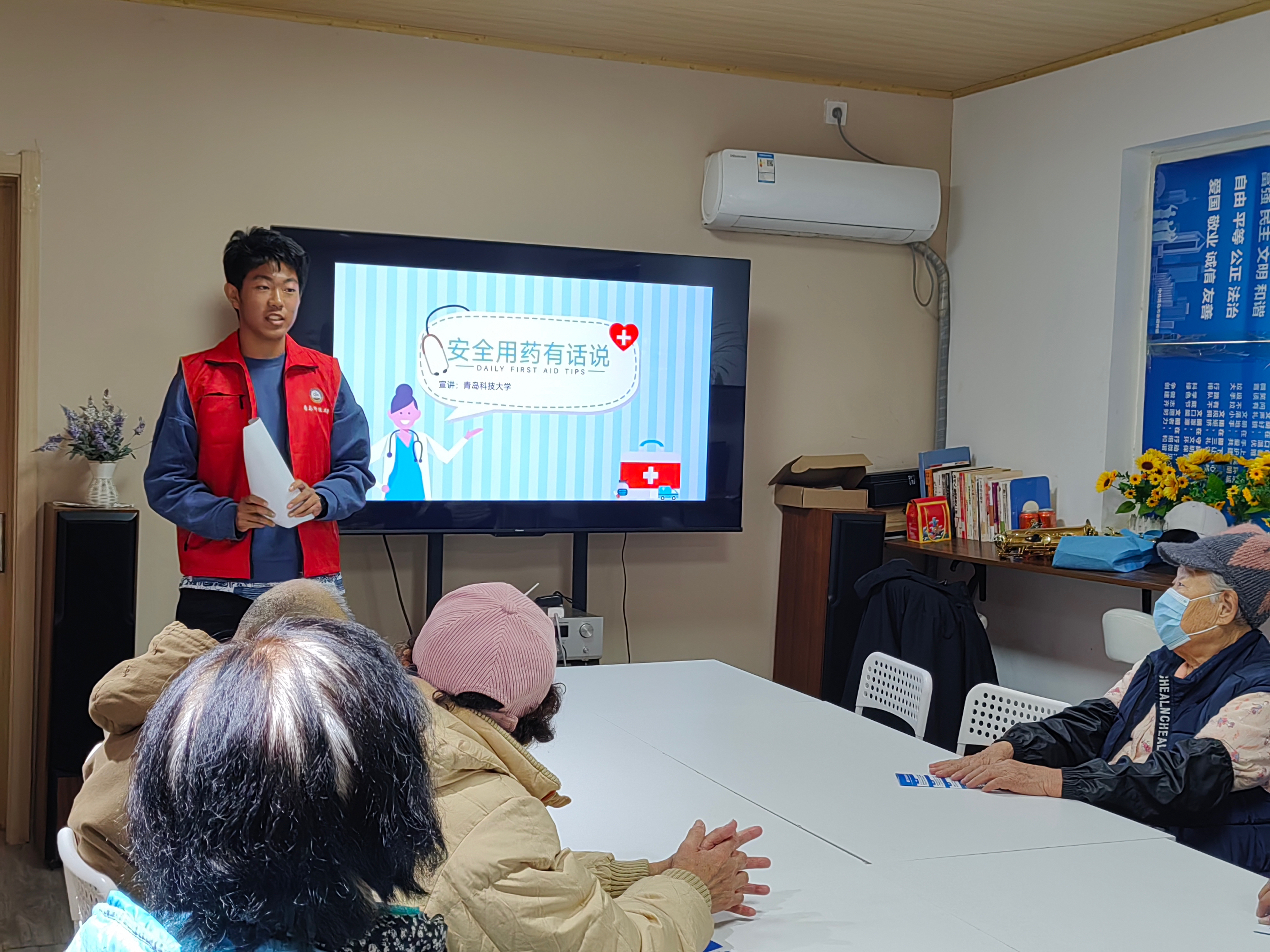 同学们从安全用药的重要性、日常用药常识、日常用药存在问题及如何保证日常用药安全等方面开展宣讲,减少降低用药不良反应,预防用药意外发生。随后,同学们在社区工作人员的配合下,分工明确,为社区居民提供安全用药咨询与答疑,传染病防治咨询与答疑服务。